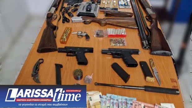 Στις κατ’ οίκον έρευνες που έγιναν καθώς και σε άλλους χώρους εντοπίστηκαν μεταξύ άλλων 6 όπλα, 287 σφαίρες μαχαίρια και γκλοπ.