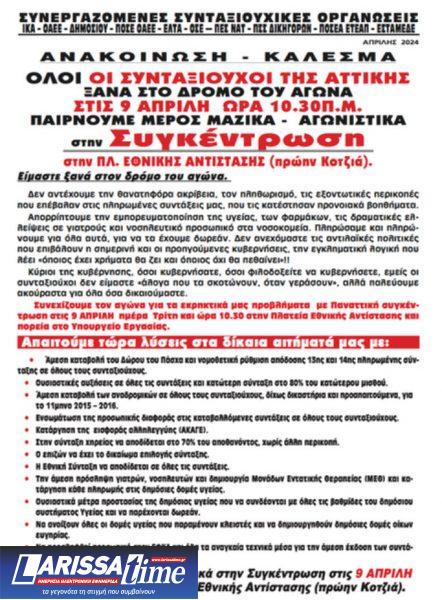 Όπως αναφέρουν οι συνταξιούχοι, η κινητοποίηση της 9ης Απριλίου έχει παναττικό χαρακτήρα και με αφετηρία τον τόπο της συγκέντρωσης θα πραγματοποιήσουν πορεία προς το υπουργείο Εργασίας.