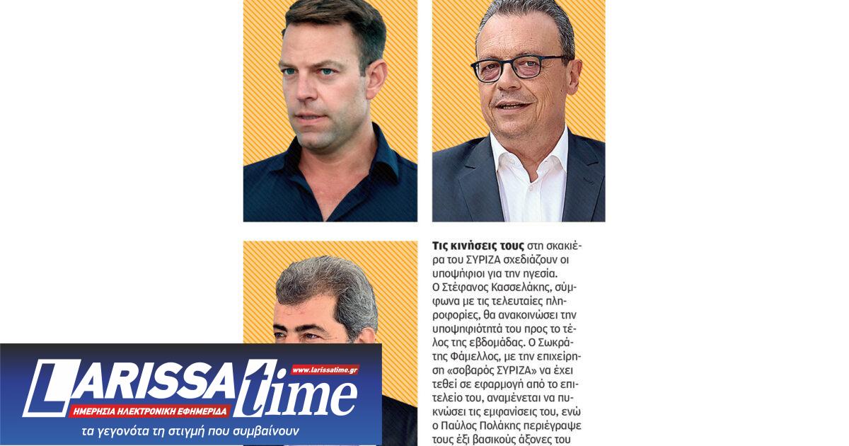 Οι τελευταίες πληροφορίες αναφέρουν πως η επίσημη ανακοίνωση της υποψηφιότητας του Στέφανου Κασσελάκη θα γίνει προς το τέλος της εβδομάδας, καθώς θέλει αρκετή δουλειά το βίντεο που ετοιμάζει. Κομβικές ημερομηνίες στον δρόμο προς τις εκλογές είναι η ανάδειξη των συνέδρων στις 19 Οκτωβρίου, η προθεσμία κατάθεσης των απαιτούμενων δικαιολογητικών των υποψηφίων (24 Οκτωβρίου – 30 υπογραφές και «πόθεν έσχες») και το συνέδριο (1-3 Νοεμβρίου). Μένοντας πιστός στον σχολιασμό της επικαιρότητας και χωρίς να απαντάει στις βολές που δέχεται, ο τέως πρόεδρος του ΣΥΡΙΖΑ έκανε μια ανάρτηση για τις φωτιές στην Κορινθία υπενθυμίζοντας και το πρόγραμμα που έχει εκπονηθεί για την Πολιτική Προστασία: «Και πάλι μια πυρκαγιά που “τρέχει” για 30 χιλιόμετρα, όπως του καλοκαιριού, που έφτασε μέχρι το Χαλάνδρι. “Από κάθε φωτιά η οποία ξεφεύγει παίρνουμε τα μαθήματά μας”, είχε δηλώσει ο πρωθυπουργός, όμως αυτός ο λαός δεν αντέχει άλλη εξάσκηση στην πλάτη του».