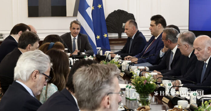 Σύσκεψη για την επιτάχυνση των διαδικασιών προσλήψεων στον δημόσιο τομέα πραγματοποιήθηκε το απόγευμα, στο Μέγαρο Μαξίμου, υπό τον πρωθυπουργό Κυριάκο Μητσοτάκη.