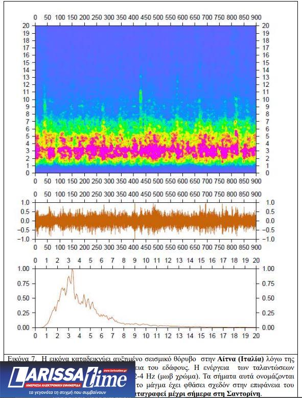 Εξετάζοντας όλα τα δεδομένα ο ίδιος αναφέρει ότι ;eχει παρατηρηθεί εδαφική παραμόρφωση 4 εκατοστά στην κατακόρυφη συνιστώσα (ανύψωση Σαντορίνης) καθώς και 8 εκατοστά στην ανατολική συνιστώσα (μετακίνηση Σαντορίνης ανατολικά).