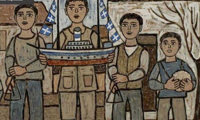 Στη Χίο, οι νέοι τραγουδούν τα κάλαντα με συνοδεία βιολιών.