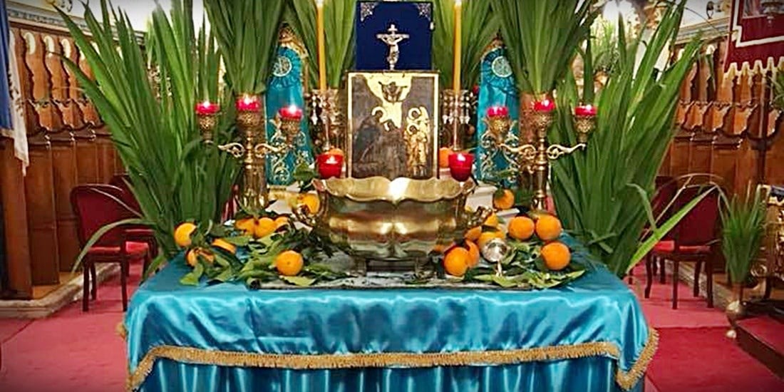 Στη Ζάκυνθο κάθε ναός στολίζεται με κλαδιά νεραντζιάς, νεραντζόφυλλα, νεράντζια και σπαθόσχημα φύλλα από τα φυτά κοκοράκια που η παράδοση θέλει να φύτρωναν στις όχθες του Ιορδάνη ποταμού.