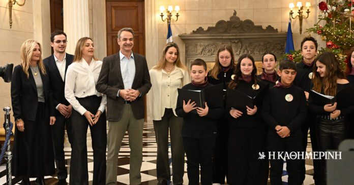 Tα κάλαντα των Χριστουγέννων στον πρωθυπουργό Κυριάκο Μητσοτάκη και στην οικογένειά του, στο Μέγαρο Μαξίμου, είπαν μαθητές από το Μουσικό Σχολείο Αλίμου και τον Πολιτιστικό Σύλλογο Ερέτριας «Κωνσταντίνος Κανάρης».
