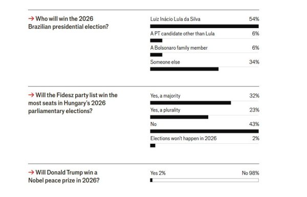 Όπως έκαναν για το 2025, έτσι και τώρα οι υπερ-προγνώστες της εταιρείας Good Judgement, δίνουν τις δικές τους εκτιμήσεις για το πού θα «κάτσει η μπίλια» σε κορυφαία ζητήματα το 2026.