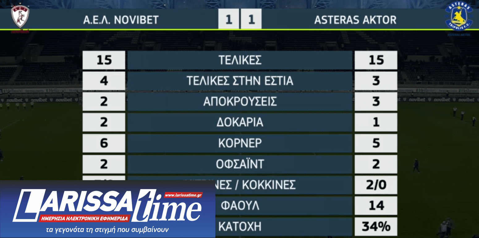 Τα στατιστικά του αγώνα ΑΕΛ-Αστέρας Τρίπολης 1-1