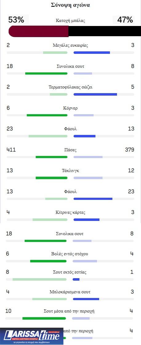 Τα στατιστικά του αγώνα ΑΕΛ-ΟΦΗ 1-2