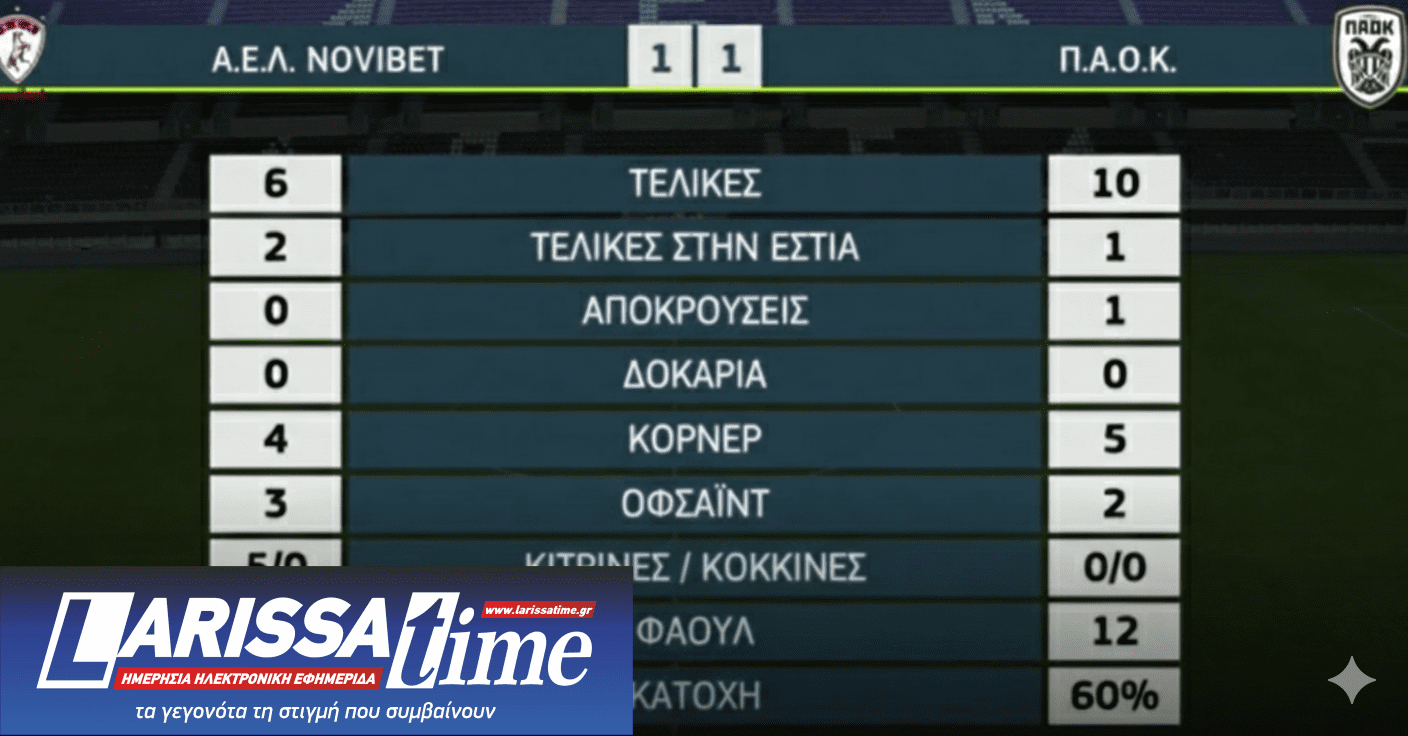 Τα στατιστικά του αγώνα ΑΕΛ-ΠΑΟΚ 1-1