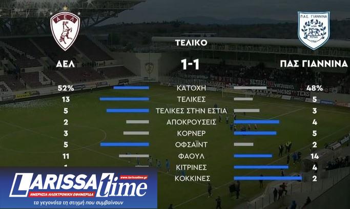 Τα στατιστικά του αγώνα ΑΕΛ-ΠΑΣ Γιάννινα 1-1