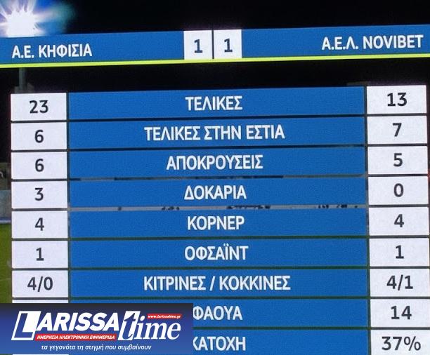 Τα στατιστικά του αγώνα Κηφισιά-ΑΕΛ 1-1