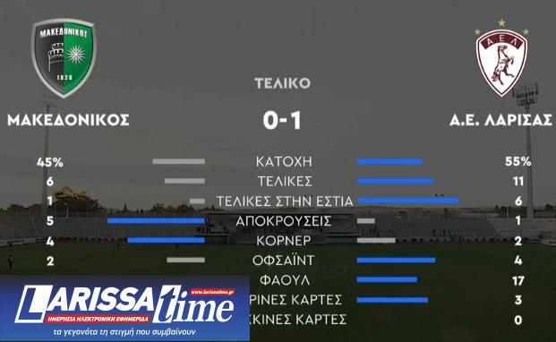 Τα στατιστικά του αγώνα Μακεδονικός-ΑΕΛ 0-1