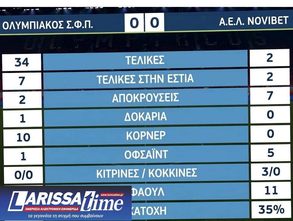 Τα στατιστικά του αγώνα Ολυμπιακός-ΑΕΛ 0-0