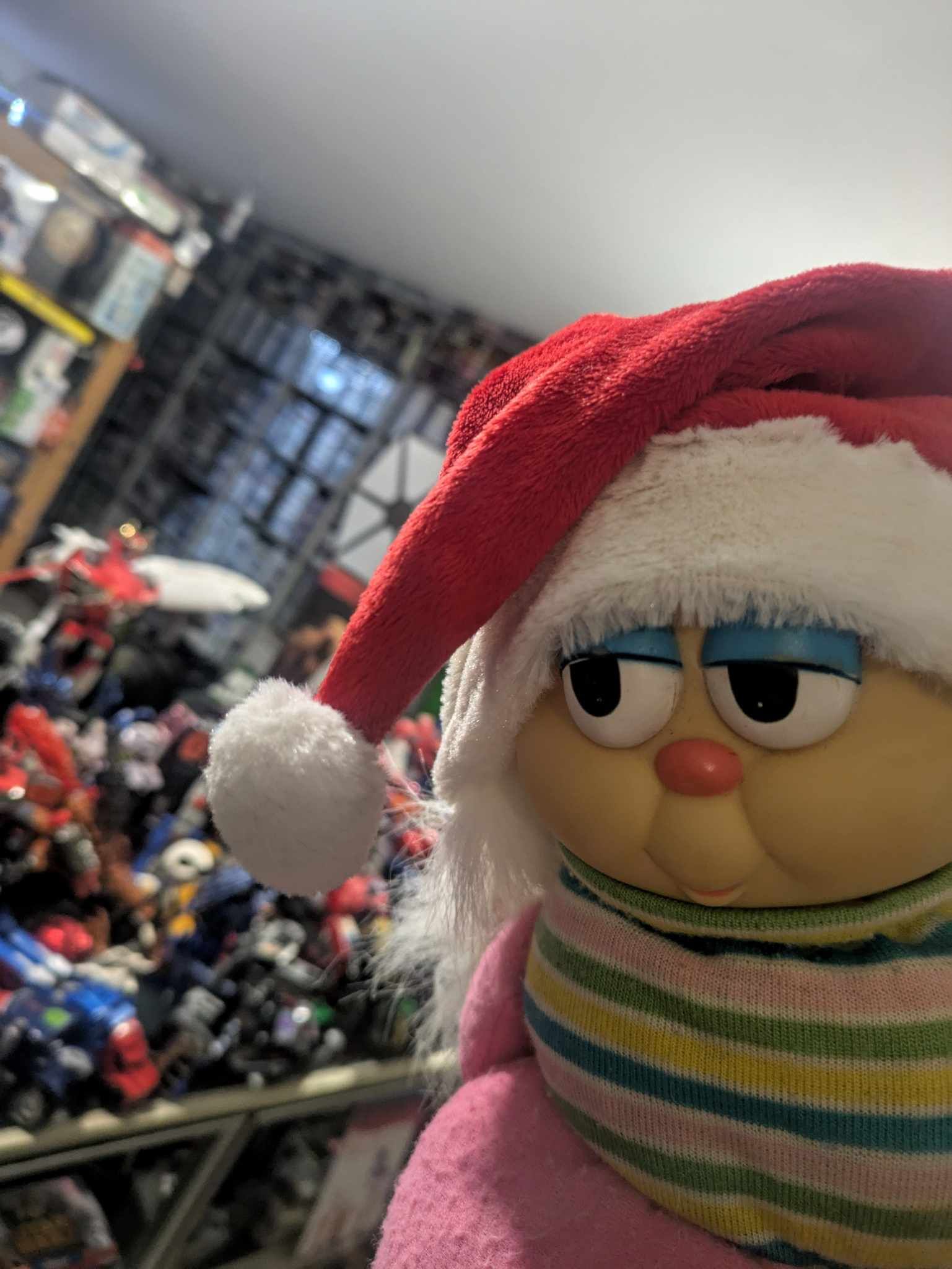 Σαν σκηνές που ξεπηδούν από ρετρό παιδικά όνειρα, Playmobil που χρονολογούνται ακόμα και από τα τέλη του 1970 συνυπάρχουν με μεμονωμένες φιγούρες άλλων παιχνιδιών δημιουργώντας στα ράφια του μαγαζιού σκηνές από φανταστικές ιστορίες, όμοιες με αυτές που πλάθουν τα παιδιά διαχρονικά στο μυαλό τους. Δίπλα τους, μολυβένια στρατιωτάκια της δεκαετίας του 1930 «μάχονται» με φιγούρες G.I.Joe της δεκαετίας του ’80. Σε ένα παρακείμενο ράφι στέκονται μια κούκλα Ρένα της δεκαετίας του ’60 και ένας φωτεινός αγκαλίτσας της δεκαετίας του ’80 να θυμίζουν την αίσθηση ασφάλειας που δημιουργούσαν στα παιδιά που τα είχαν κάποτε δίπλα τους.