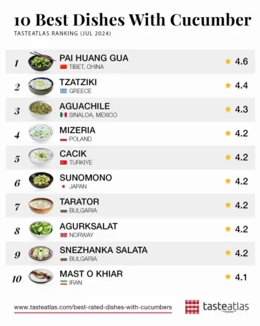 Αυτή τη φορά, το Taste Atlas ασχολήθηκε με πιάτα που έχουν ως κύριο συστατικό τους το αγγούρι, ένα δροσερό λαχανικό που καταναλώνουμε ιδιαίτερα το καλοκαίρι.