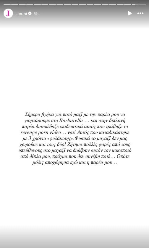 Σημαντικές εξελίξεις έχει η υπόθεση της Ιωάννας Τούνη, σχετικά με το revenge porn, μετά την απόφαση του δικατσηρίου το οποίοέκιρνε ένοχους τους κατηγορούμενοι κρίθηκαν ένοχοι από τη Δικαιοσύνη.