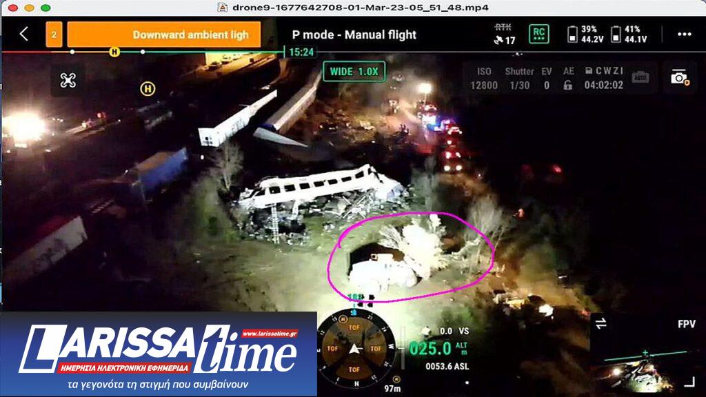 Πολύ λίγες ώρες μετά τη σύγκρουση των τρένων, περίπου στις 05:30 τα ξημερώματα, drones της Πυροσβεστικής φωτογράφισαν μπουλντόζα να μεταφέρει κορμούς δέντρων οι οποίοι, όμως, δεν εντοπίστηκαν στον χώρο φύλαξης συντριμμιών στο Κουλούρι.