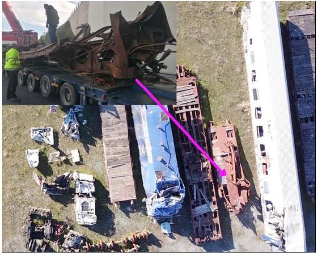 Στο πόρισμα, λοιπόν, του ΕΟΔΑΣΑΑΜ στις σελίδες 39 και 40 αναφέρονται χαρακτηριστικά τα εξής: «Το πίσω τμήμα του πρώτου βαγονιού μπορεί να ταυτοποιηθεί μεταξύ των υπολειμμάτων των οχημάτων στην περιοχή Κουλούρι, αλλά το μπροστινό του τμήμα δεν είναι διαθέσιμο για εξέταση, καθώς προφανώς κόπηκε σε μικρότερα κομμάτια για να καταστεί ευκολότερη η μεταφορά του. Αυτή η ενέργεια δεν καταγράφηκε με κανέναν τρόπο και δεν υπάρχουν φωτογραφίες του βαγονιού στην αρχική του κατάσταση στο σημείο του δυστυχήματος, πριν κοπεί και μετακινηθεί από άγνωστο φορέα».