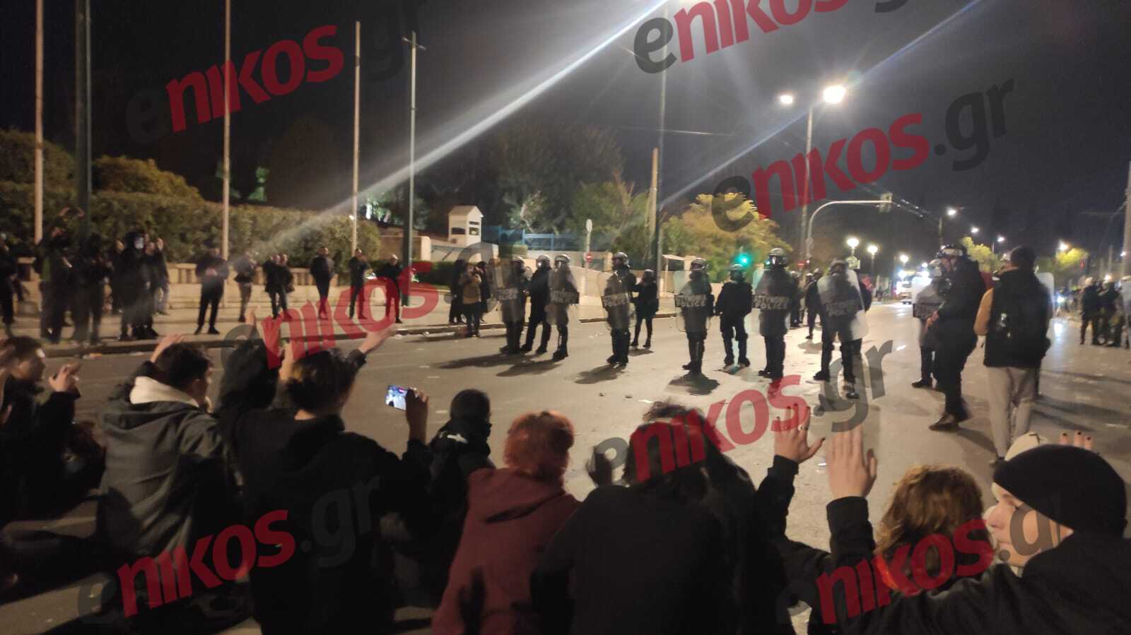 Εκατοντάδες πολίτες βρίσκονται γύρω από τα ονόματα των 57 νεκρών της σιδηροδρομικής τραγωδίας στα Τέμπη, ενώ αρκετοί έχουν καθίσει κάτω επί της οδού Αμαλίας, μπροστά από τις αστυνομικές δυνάμεις φωνάζοντας συνθήματα, ενώ ζητούν να αποχωρήσουν τα ΜΑΤ από το σημείο.