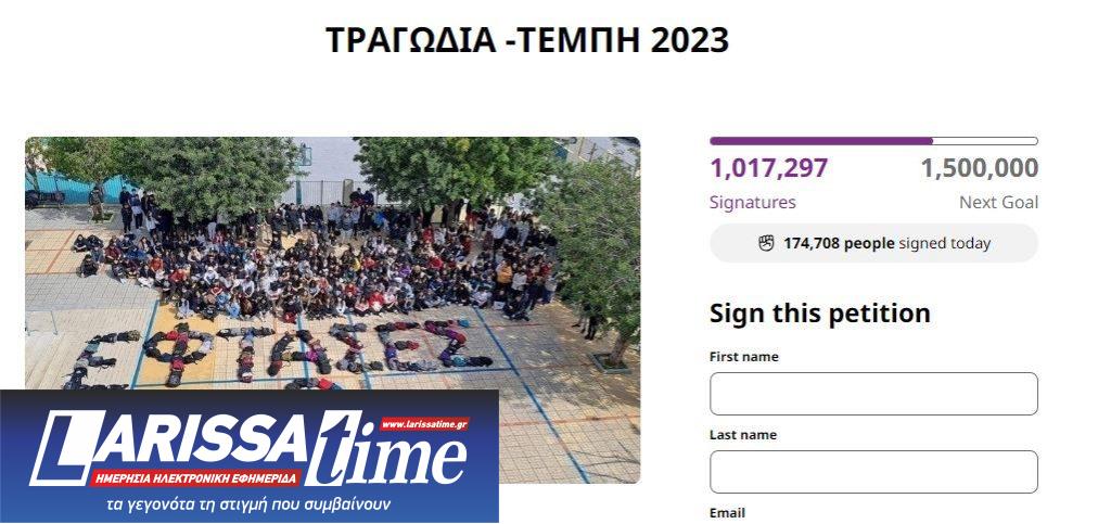 Πάνω από 1.000.000 υπογραφές συγκεντρώνει το ψήφισμα για την απόδοση ευθυνών στο έγκλημα των Τεμπών, ανήμερα της συμπλήρωσης ενός χρόνου από το σιδηροδρομικό δυστύχημα.