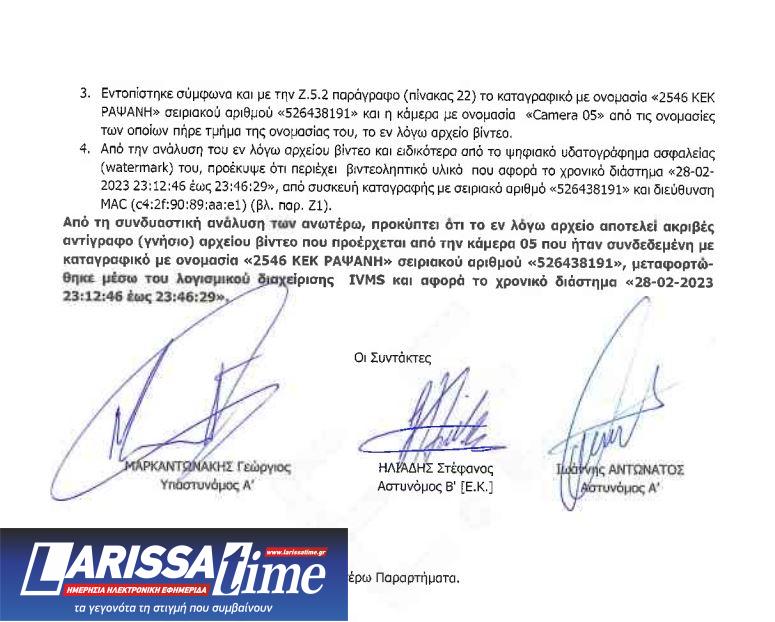 Γνήσια είναι τα τρία βίντεο που ετεροχρονισμένα παραδόθηκαν στις δικαστικές αρχές για την υπόθεση της τραγωδίας των Τεμπών σύμφωνα με την έκθεση της εργαστηριακής πραγματογνωμοσύνης της ΕΛΑΣ.