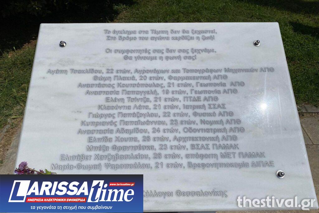 To μνημείο στο ΑΠΘ για τους φοιτητές που σκοτώθηκαν στη σύγκρουση των τρένων