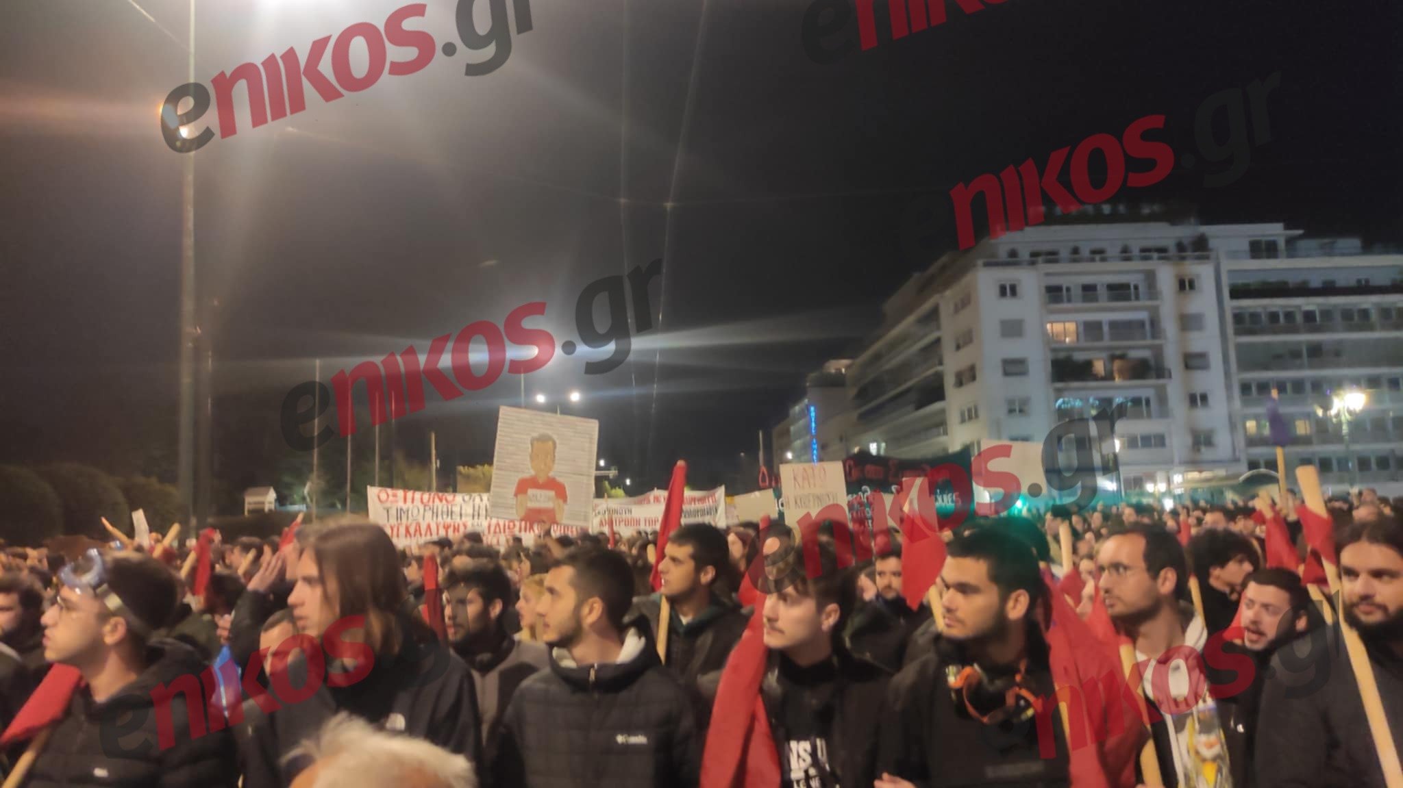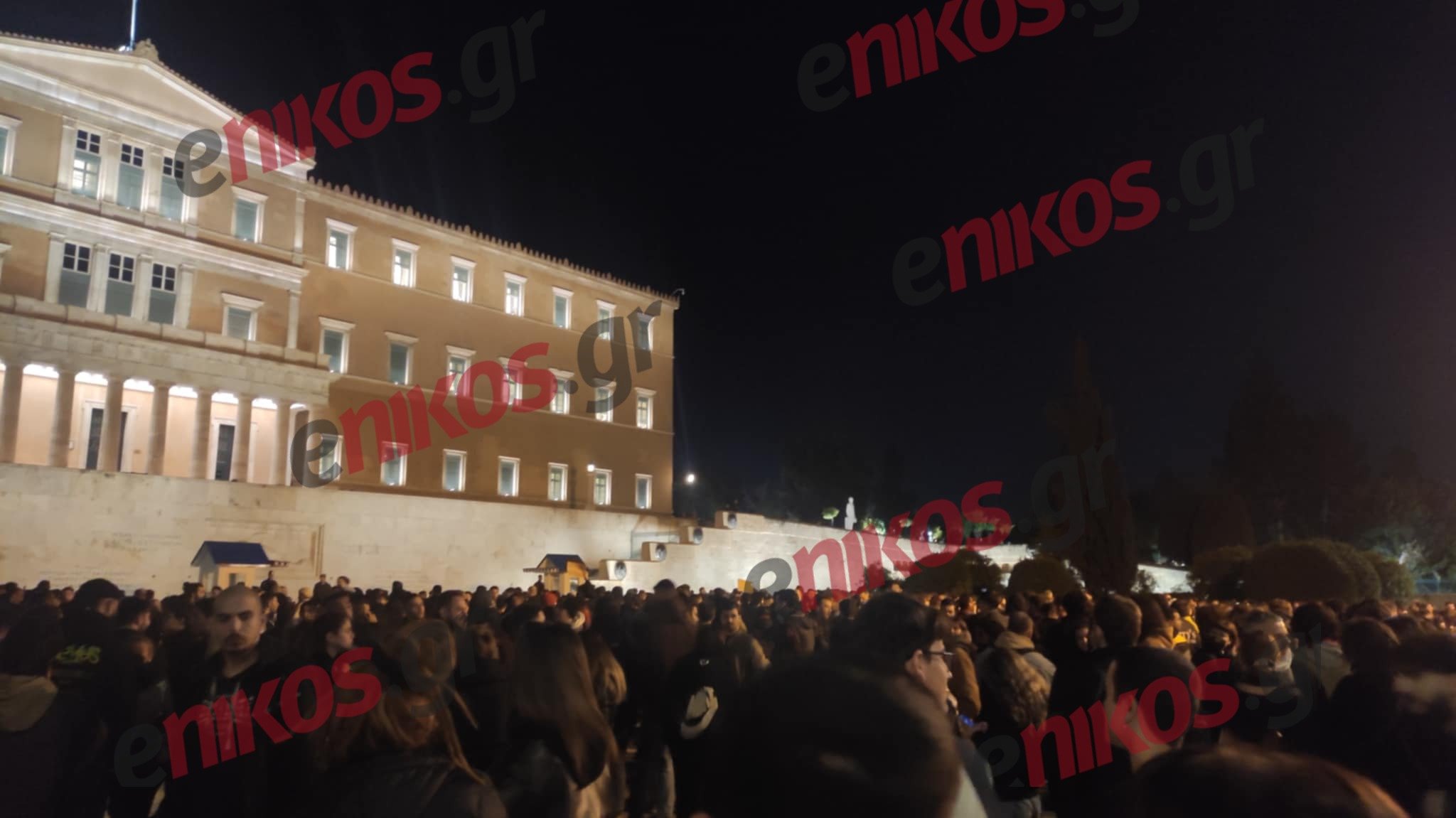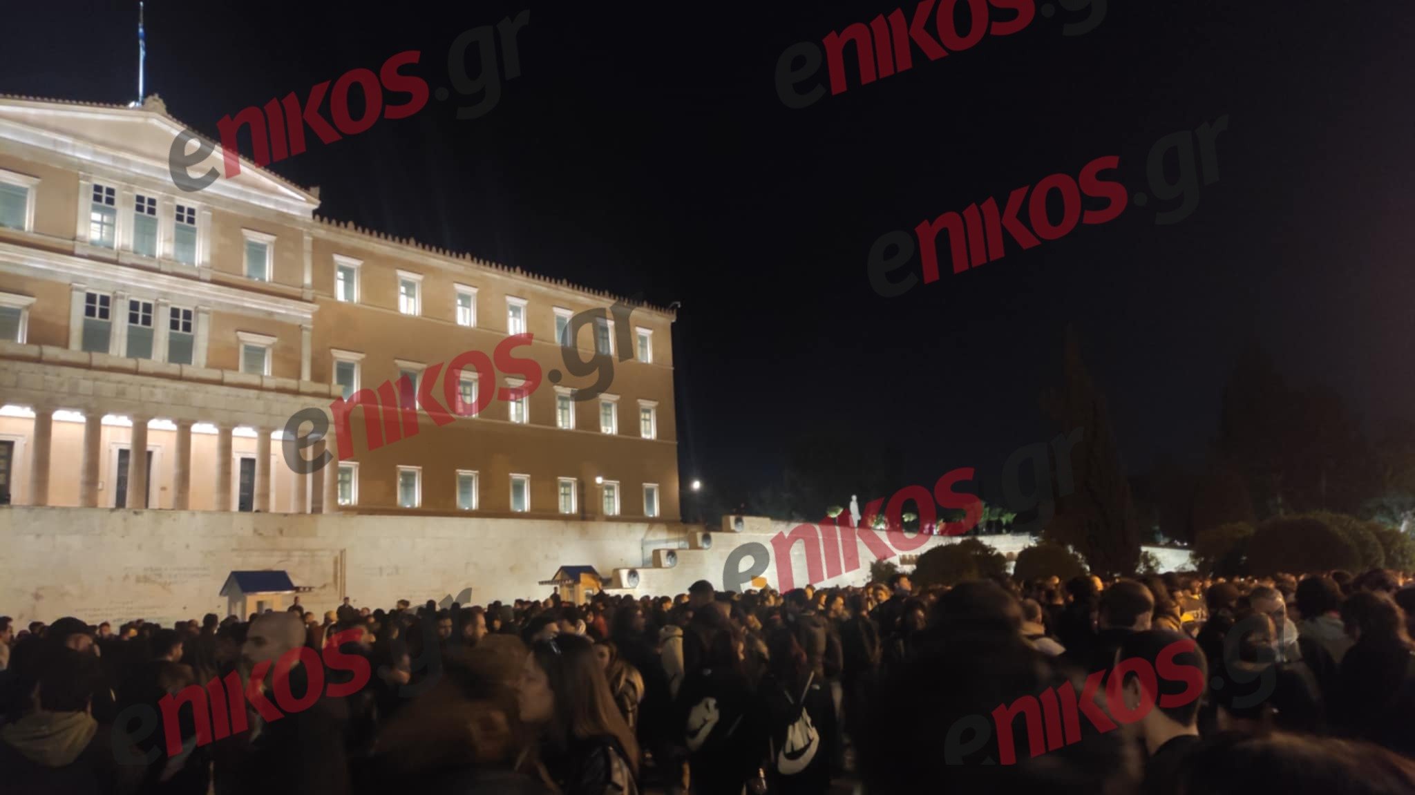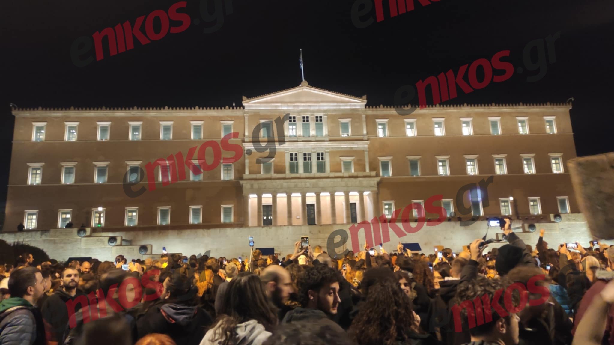 Χιλιάδες διαδηλωτές παραμένουν μπροστά από το κτίριο της Βουλής στην πάνω πλευρά της πλατείας Συντάγματος, φωνάζοντας συνθήματα, την ώρα που μέσα στο Κοινοβούλιο συνεχίζεται η συζήτηση για την πρόταση δυσπιστίας με την ψηφοφορία να είναι προγραμματισμένη για τα μεσάνυκτα.
