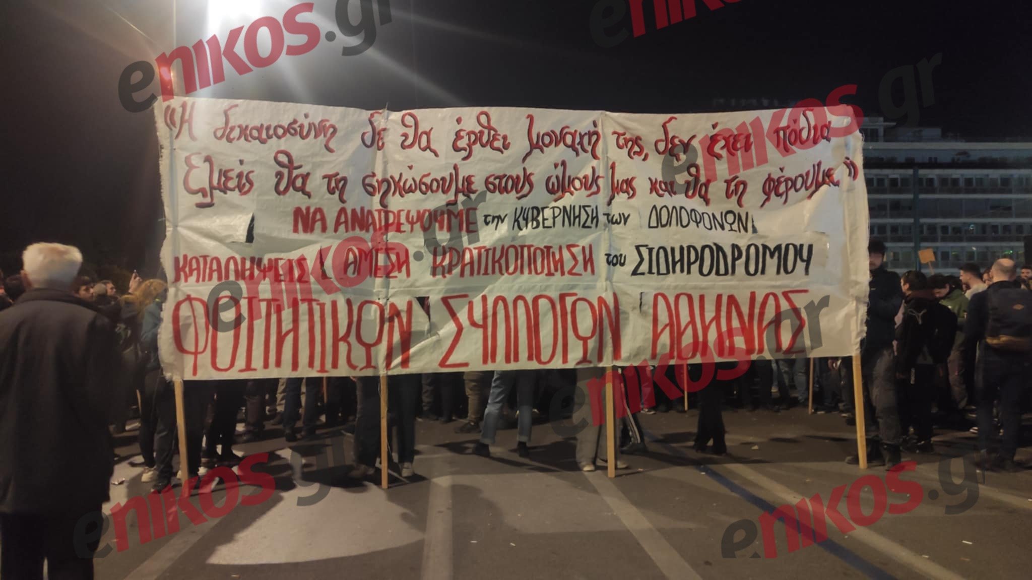 Από την εξέδρα ο Βασίλης Ζαβογιάννης, πρόεδρος του συνδικάτου μηχανοδηγών αναφέρθηκε με αφορμή τα Τέμπη στις προειδοποιήσεις που είχε απευθύνει ο κλάδος πριν το δυστύχημα για τις χρόνιες δυσλειτουργίες και ανέπτυξε τα προβλήματα που ακόμη ταλανίζουν τις σιδηροδρομικές συγκοινωνίες. Τον λόγο πήρε στη συνέχεια ο Παναγιώτης Παπαγεωργόπουλος, εκπρόσωπος του Εργατικού Κέντρου Αθήνας, κι ακολούθησε ο Μάρκος Μπεκρής, πρόεδρος του Εργατικού Κέντρου Πειραιά, που εξέφρασαν με τη σειρά τους τη συμπαράσταση των εργαζομένων στο δίκαιο αγώνα των συγγενών των νεκρών.