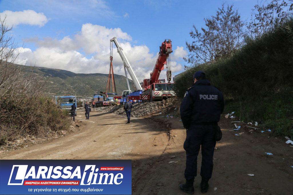 Εργασίες στο σημείο της πολύνεκρης σύγκρουσης αμαξοστοιχιών στα Τέμπη