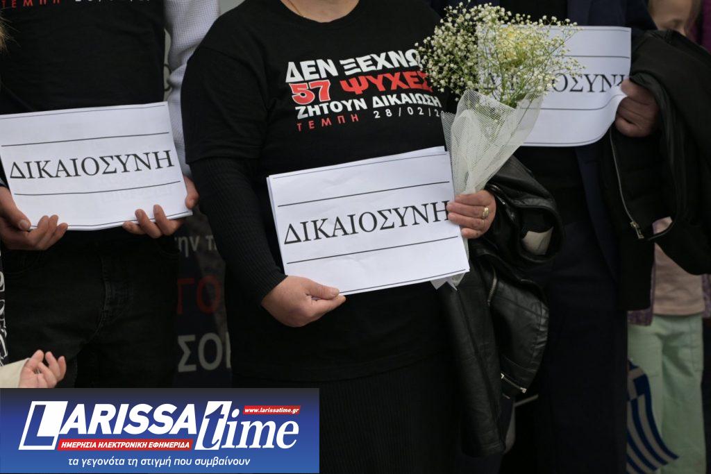 Σύμφωνα με το onlarissa.gr η οικογένεια στάθηκε απέναντι από την εξέδρα των επισήμων, ζητώντας αυτό που αποτελεί και αίτημα της ελληνικής κοινωνίας: «Δικαιοσύνη» για τους νεκρούς τους δυστυχήματος. Τραγική φιγούρα η μητέρα της 21χρονης που κρατούσε στα χέρια της μια ανθοδέσμη με λευκά λουλούδια.