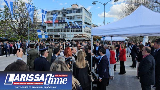 Φορώντας μαύρη μπλούζα με το σύνθημα: «Δεν ξεχνώ. 57 ψυχές ζητούν δικαίωση», κρατώντας χαρτιά με τη λέξη «Δικαιοσύνη» και πρόσωπα σκυθρωπά η οικογένεια της 21χρονης κοπέλας, έδωσε το «παρών» στη μαθητική και στρατιωτική παρέλαση της 25ης Μαρτίου στη Λάρισα.