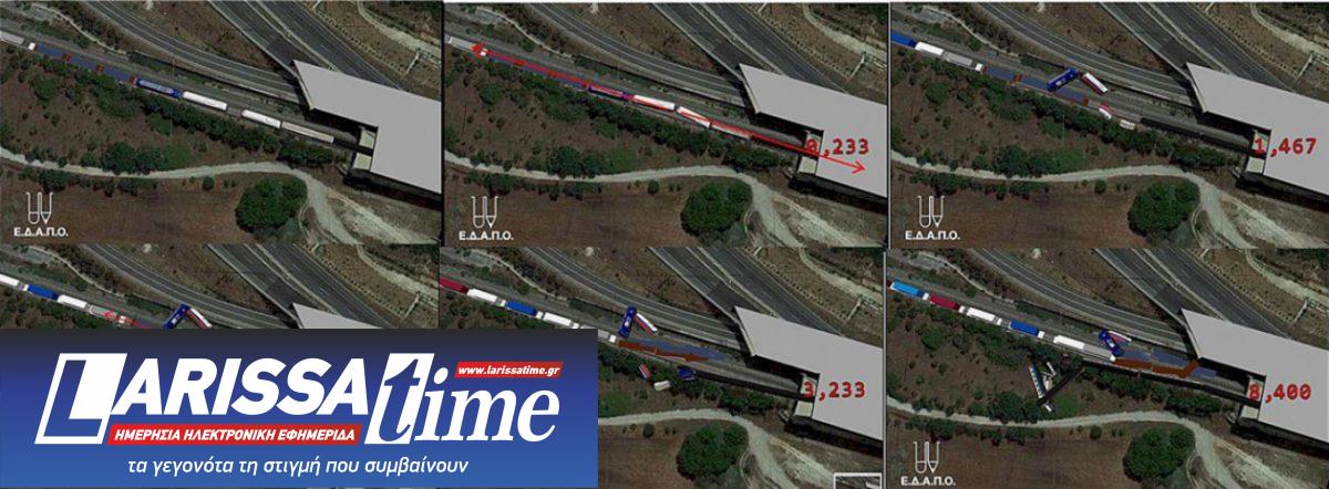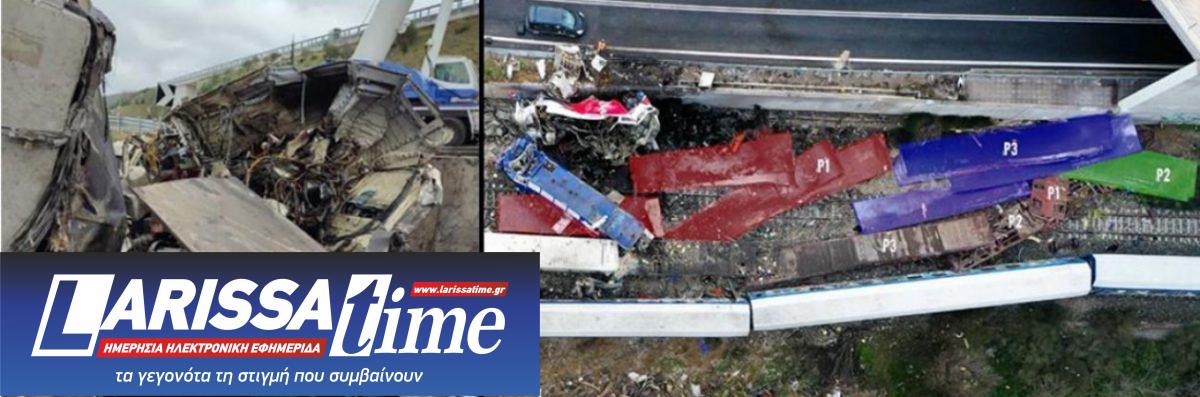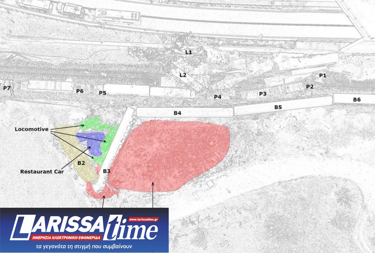 Πρόκειται για φωτογραφίες και σχεδιαγράμματα από τον τόπο του δυστυχήματος, τα συντρίμμια των δύο τρένων και τον μοιραίο σταθμό της Λάρισας που περιλαμβάνονται στην έκθεση των 178 σελίδων.