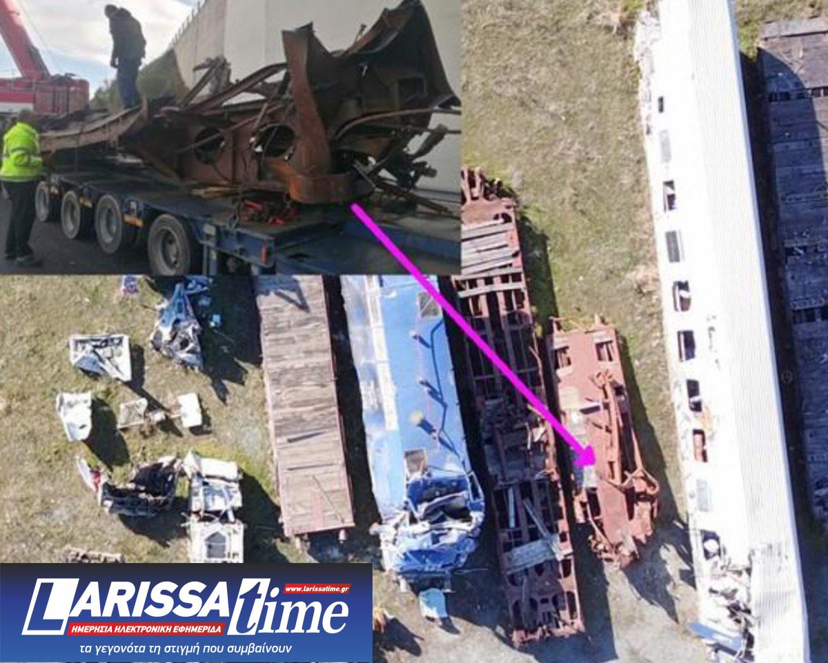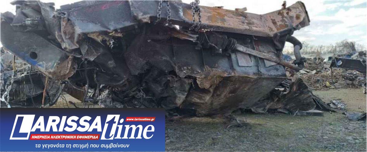 Τμήμα (σασί) της πλήρως κατεστραμμένης μηχανής 120-023 της επιβατικής αμαξοστοιχίας IC-62.
