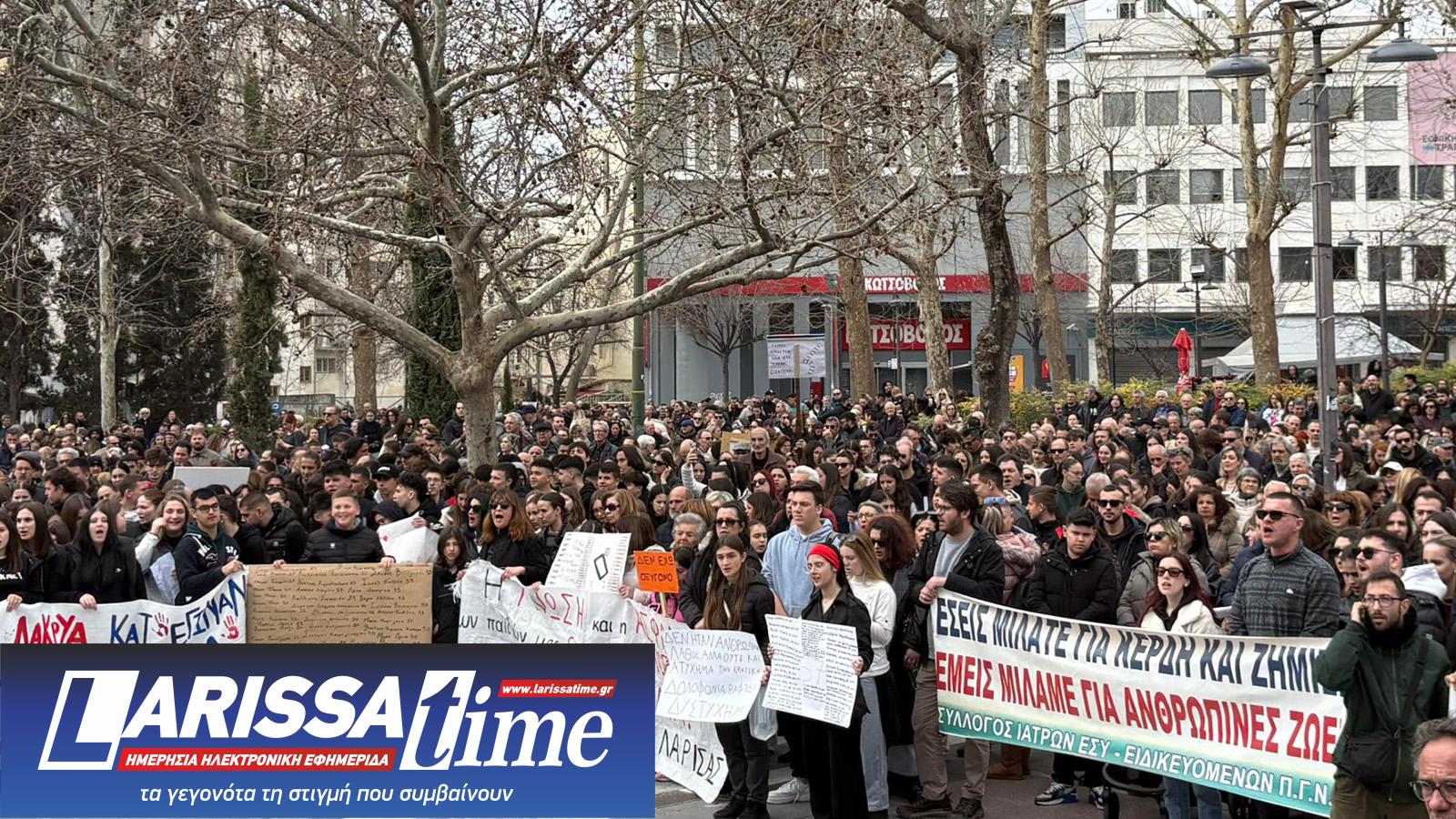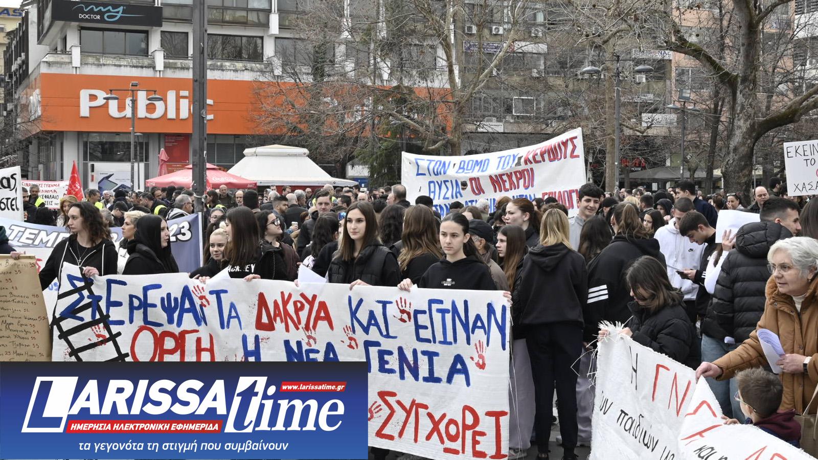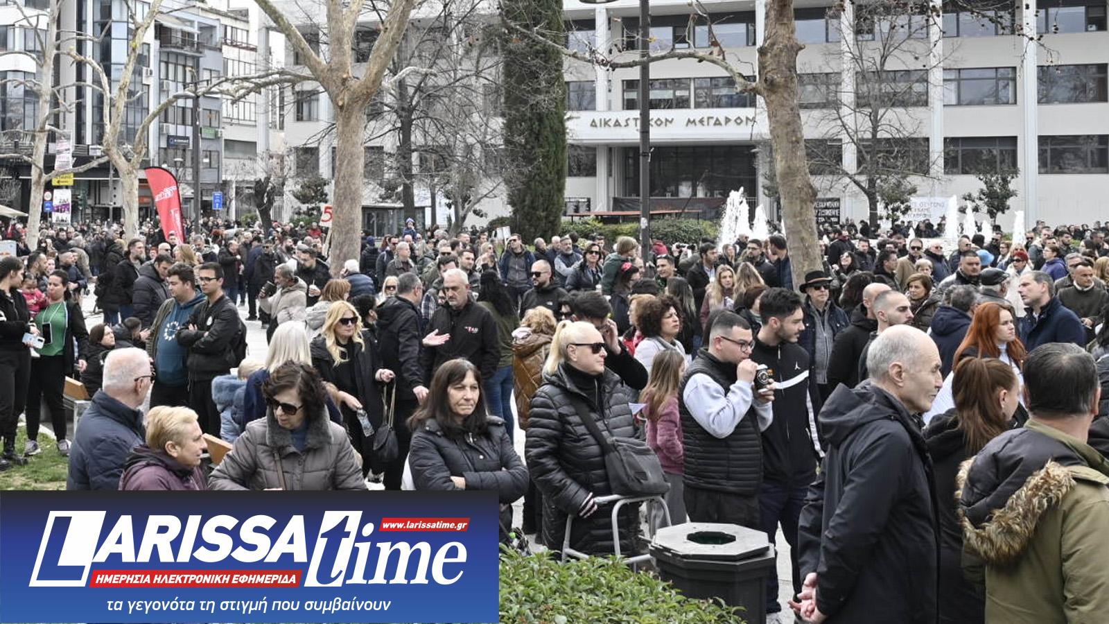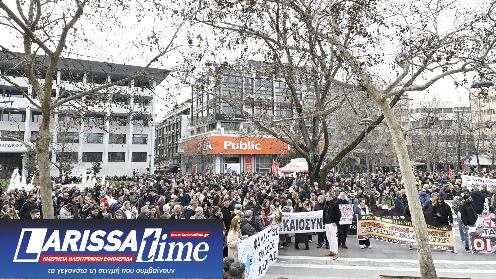 Στη Λάρισα, φορείς, σωματεία και πολίτες συμμετέχουν δυναμικά στη συγκέντρωση στην κεντρική πλατεία, στέλνοντας το μήνυμα ότι η υπόθεση δεν έχει κλείσει και ότι η κοινωνία εξακολουθεί να απαιτεί απαντήσεις.