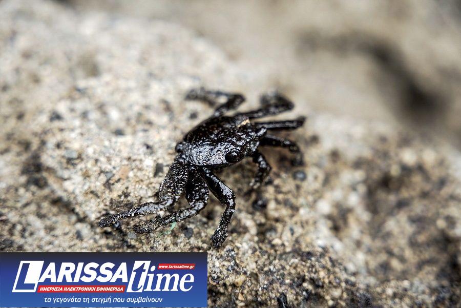 Καβούρι καλυμμένο με πετρέλαιο λόγω διαρροής πετρελαίου στην παραλία Λα Καπουγιάνα στο βόρειο Περού, στις 23 Δεκεμβρίου, 2024