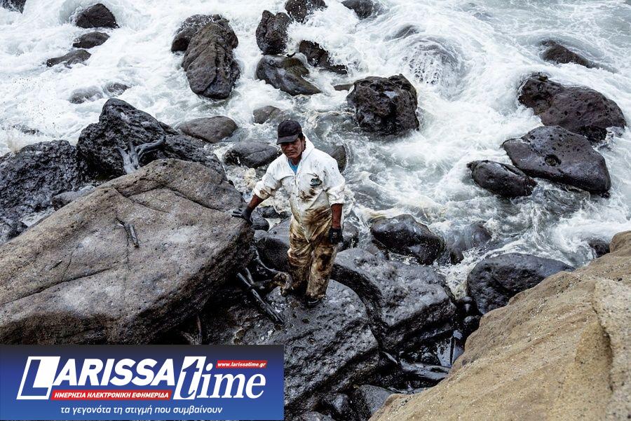 Καβουράκια «πνιγμένα» στο πετρέλαιο και μια ακτή «βαμμένη» μαύρη καταγράφει ο φωτογραφικός φακός στην παραλία Λα Καπουγιάνα στο βόρειο Περού, μετά από πετρελαιοκηλίδα που διέρρευσε στην περιοχή.