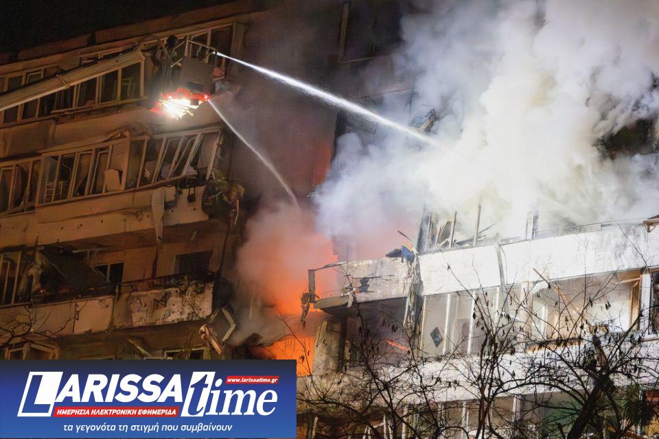 Πυρκαγιά μετά από επίθεση drone σε πολυώροφο κτήριο κατοικιών κατά τη διάρκεια νυχτερινής επίθεσης με drone της Ρωσίας στο Κίεβο (Φωτογραφία Αρχείου)
