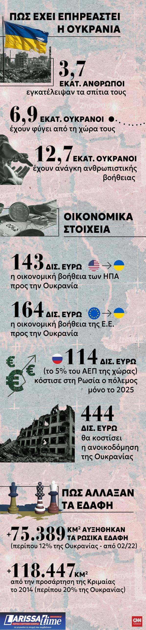 Είναι ενδεικτικό ότι μέχρι στιγμής έχει λάβει οικονομική βοήθεια 143 δισ. ευρώ από τις ΗΠΑ και 164 δισ. ευρώ από την Ευρωπαϊκή Ένωση.