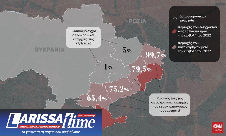 Οι χάρτες του CNN Greece αποτυπώνουν τα χαρακώματα του πολέμου, όπως αποτυπώθηκαν στις 27 Ιανουαρίου του 2026.