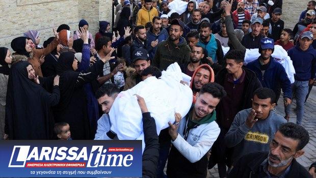 Οι πενθούντες αντιδρούν καθώς παρευρίσκονται στην κηδεία Παλαιστινίων που, σύμφωνα με τους γιατρούς, σκοτώθηκαν την Τετάρτη κατά την ισραηλινή επίθεση σε σκηνές, στο νοσοκομείο Νάσερ στο Χαν Γιούνις στη νότια Λωρίδα της Γάζας, στις 4 Δεκεμβρίου 2025.