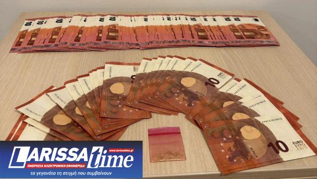 Τα πλαστά χαρτονομίσματά και η ναρκωτική ουσία κατασχέθηκαν.