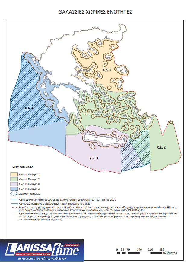 Τα απώτατα δυνητικά όρια της ελληνικής υφαλοκρηπίδας καταγράφονται για πρώτη φορά σε επίσημο κείμενο της Ε.Ε.. Αυτό προκύπτει από την πράξη συγκρότησης της Εθνικής Χωρικής Στρατηγικής για τον Θαλάσσιο Χώρο (ΕΧΣΘΧ), με την οποία εξειδικεύεται και αποτυπώνεται σε χάρτη ο Θαλάσσιος Χωροταξικός Σχεδιασμός (ΘΧΣ) της χώρας.