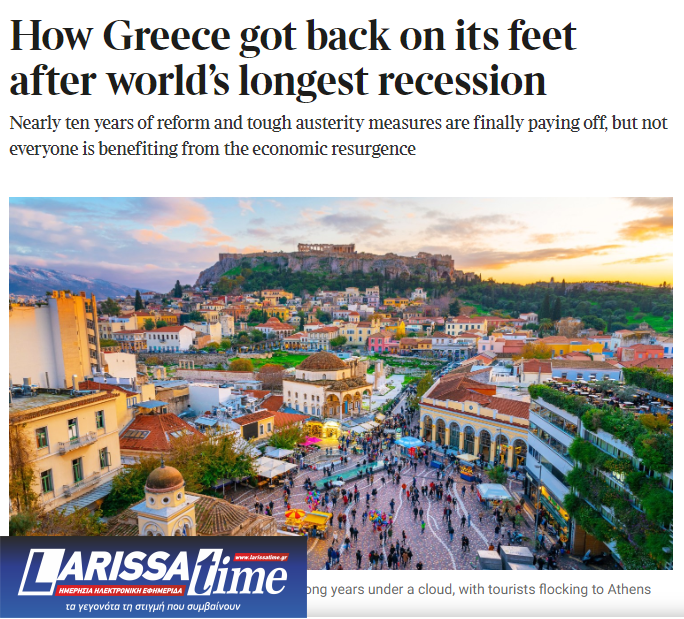 «Σχεδόν δέκα χρόνια μεταρρυθμίσεων και σκληρών μέτρων λιτότητας τελικά απέδωσαν καρπούς», για την Ελλάδα τονίζει μεταξύ άλλων η εφημερίδα Times σε ένα εκτενές ρεπορτάζ στο οποίο παρουσιάζονται τα οικονομικά στοιχεία τα οποία καταδεικνύουν πως η χώρα μας «στάθηκε ξανά στα πόδια της μετά τη μεγαλύτερη παγκόσμια ύφεση», όπως χαρακτηριστικά γράφει.