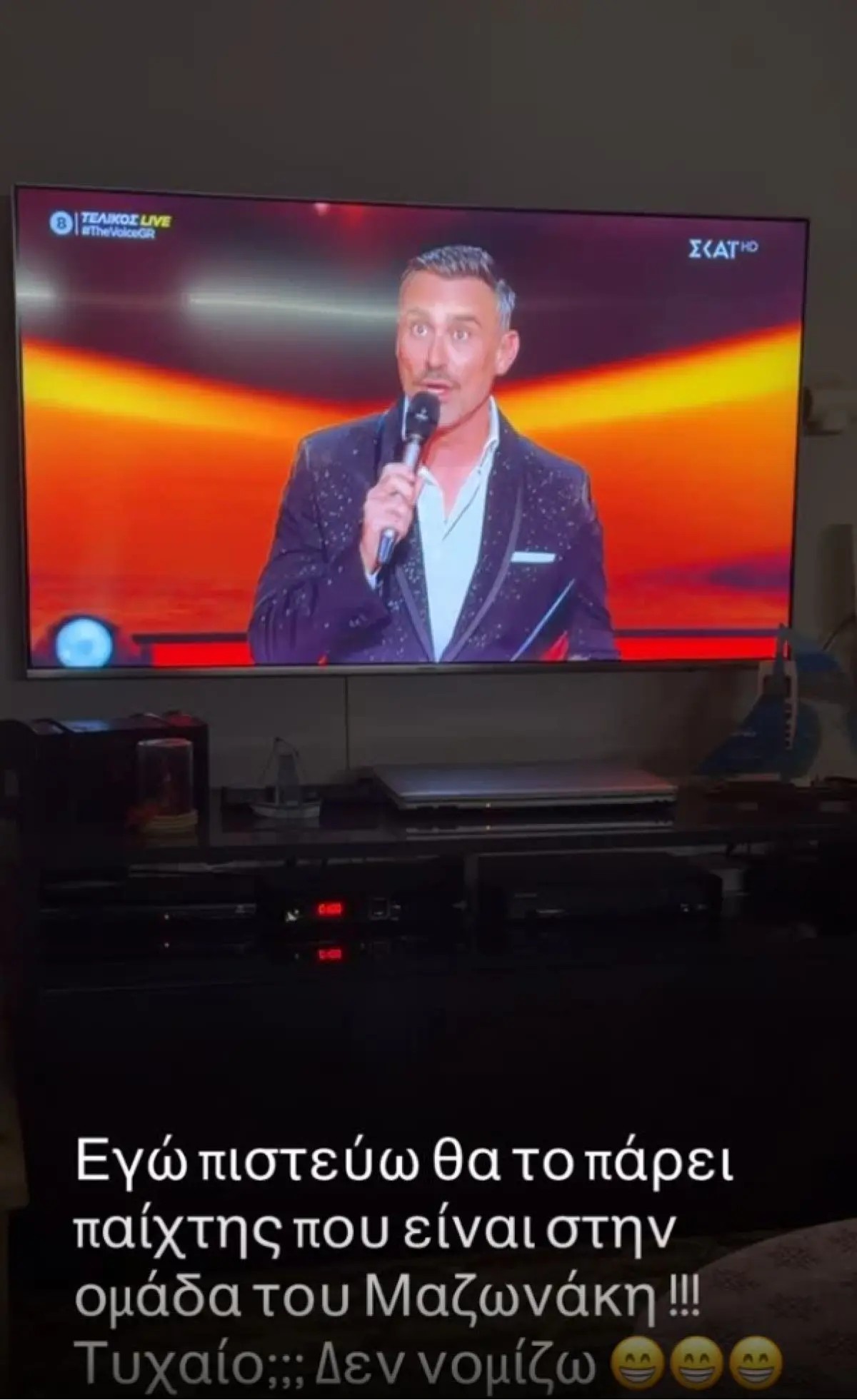 Η μεγάλη ανατροπή, ωστόσο, ήρθε όταν ανακοινώθηκε ότι νικητής του The Voice ήταν ο Κωνσταντίνος Κωμοδρόμος από την ομάδα της Έλενας Παπαρίζου. Εκεί, ο Τριαντάφυλλος έμεινε κυριολεκτικά άφωνος, με τα επόμενα stories του να έχουν έντονο αυτοσαρκασμό και διάθεση… παραδοχής της ήττας.