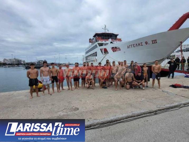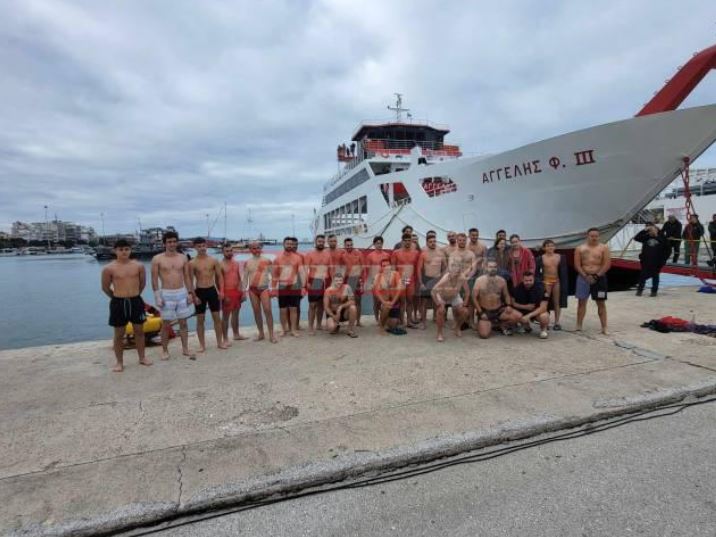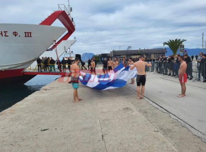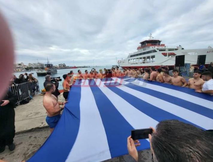Μάλιστα, οι κολυμβητές και φέτος άνοιξαν μια τεράστια ελληνική σημαία και απήγγειλαν τον Εθνικό Ύμνο. Τον σταυρό έπιασε για δεύτερη φορά ο αθλητής του ΝΟΠ, Χρήστος Βουκελάτος, μαθητής της Γ’ Λυκείου, ο οποίος θέλει να σπουδάσει ιατρική.