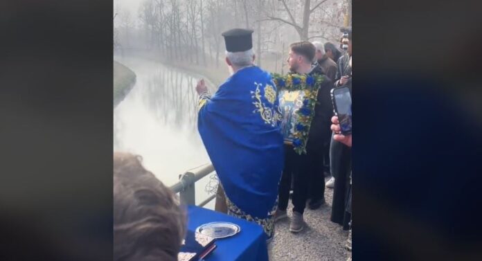 Το ευτράπελο συνέβη στη γέφυρα Γκίκα. Όπως φαίνεται σε βίντεο που έχει δημοσιευτεί στο TikTok, ο ιερέας επιχείρησε να ρίξει τον Σταυρό στο νερό, αλλά τελικά αυτός κατέληξε στο κεφάλι πιστού που βρισκόταν στο σημείο.