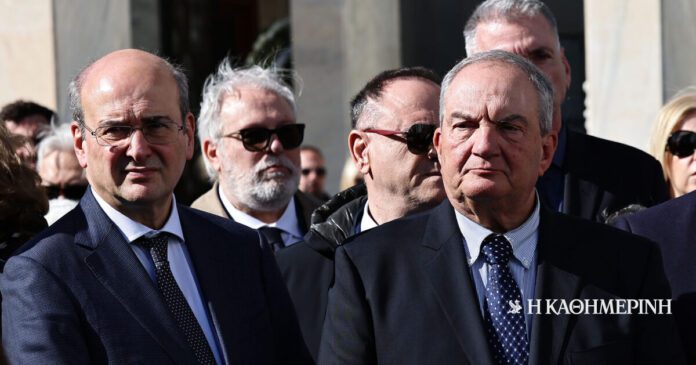 Κορυφαίες προσωπικότητες της πολιτικής ζωής της χώρας έδωσαν χθες το «παρών» στο τελευταίο αντίο στην Αννα Ψαρούδα-Μπενάκη στο Α΄ Νεκροταφείο Αθηνών. Από τις πολλές συζητήσεις που έλαβαν χώρα, οι περισσότεροι έστρεψαν το βλέμμα τους στον συνήθως φειδωλό και λιγομίλητο Καραμανλή, που είχε ένα αρκετά μεγάλο, χρονικά, τετ α τετ με τον Κωστή Χατζηδάκη. Ο αντιπρόεδρος της κυβέρνησης κρατάει, άλλωστε, επαφές με τον πρώην πρωθυπουργό, επί κυβέρνησης του οποίου ανέλαβε για πρώτη φορά υπουργός και μάλιστα σε κορυφαίες θέσεις.