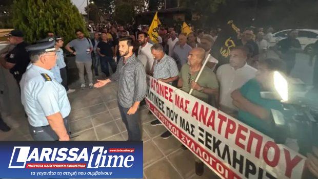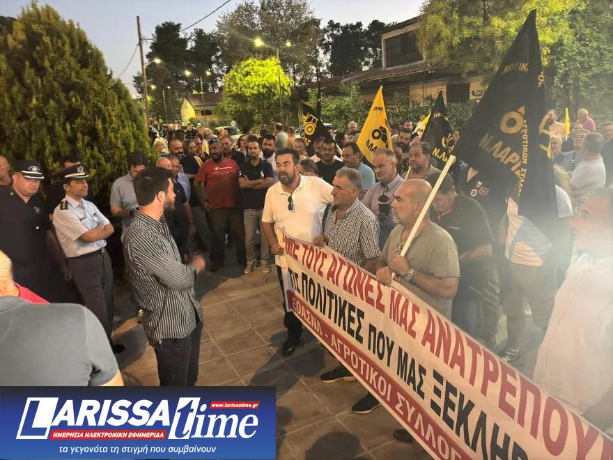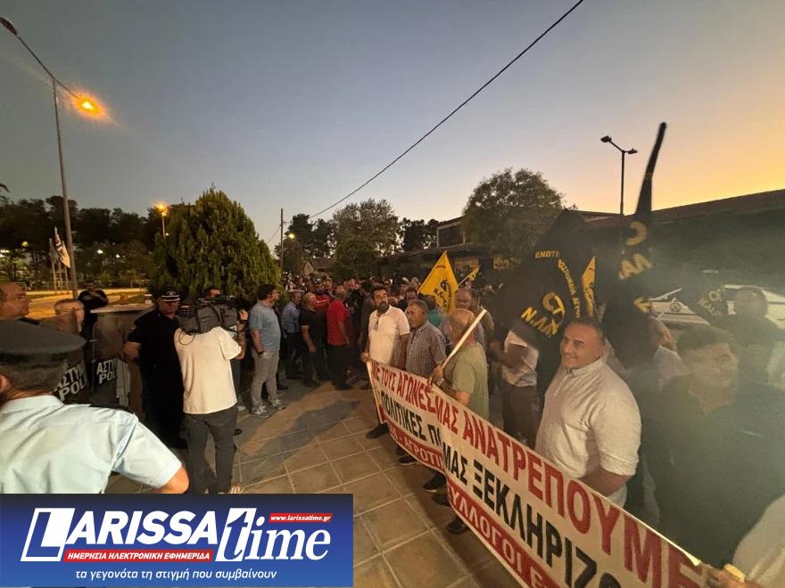 Οι αγρότες και οι κτηνοτρόφοι από τους νόμους Λάρισας και Μαγνησίας, ανταποκρινόμενοι στο κάλεσμα των Ομοσπονδιών Αγροτικών Συλλόγων Λάρισας και Μαγνησίας, επιφύλαξαν… θερμή υποδοχή στο κυβερνητικό κλιμάκιο που μετείχε στη σύσκεψη, η οποία έλαβε χώρα στην αίθουσα του Νέου Διοικητηρίου της Περιφέρειας Θεσσαλίας στη Λάρισα. Στο σημείο βρίσκονταν ισχυρές αστυνομικές δυνάμεις.