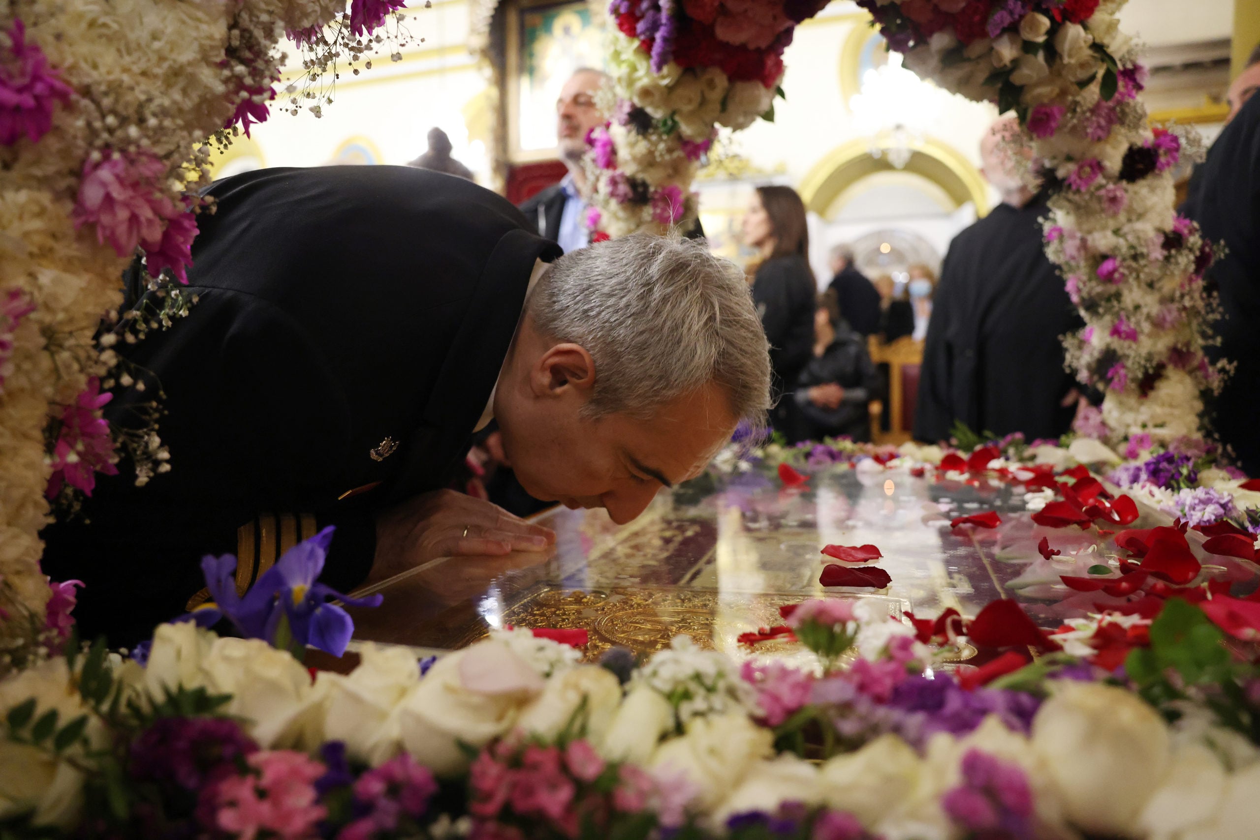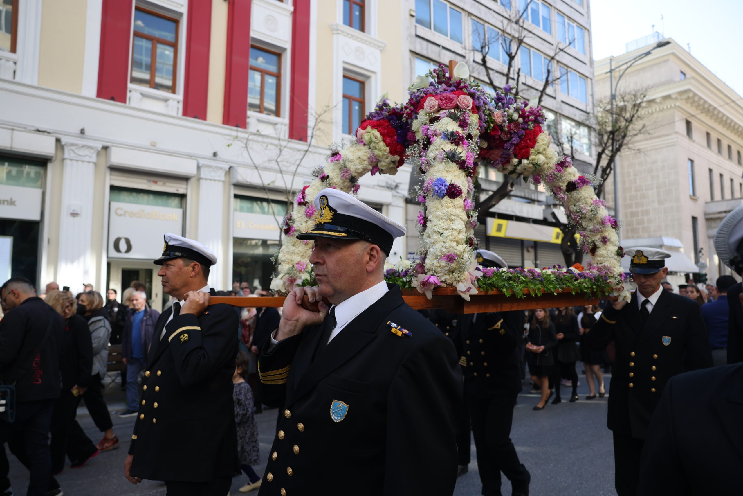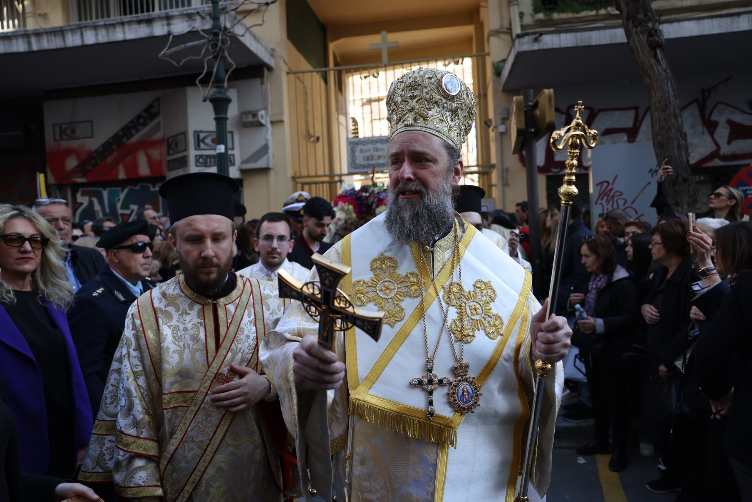 Στο σημείο εψάλησαν τροπάρια του Επιταφίου Θρήνου και τελέστηκε Δέηση, μέσα σε κλίμα κατάνυξης και με τη συμμετοχή πλήθους πιστών, ενώ την τελετή πλαισίωσαν φιλαρμονικές και τιμητικά αγήματα.