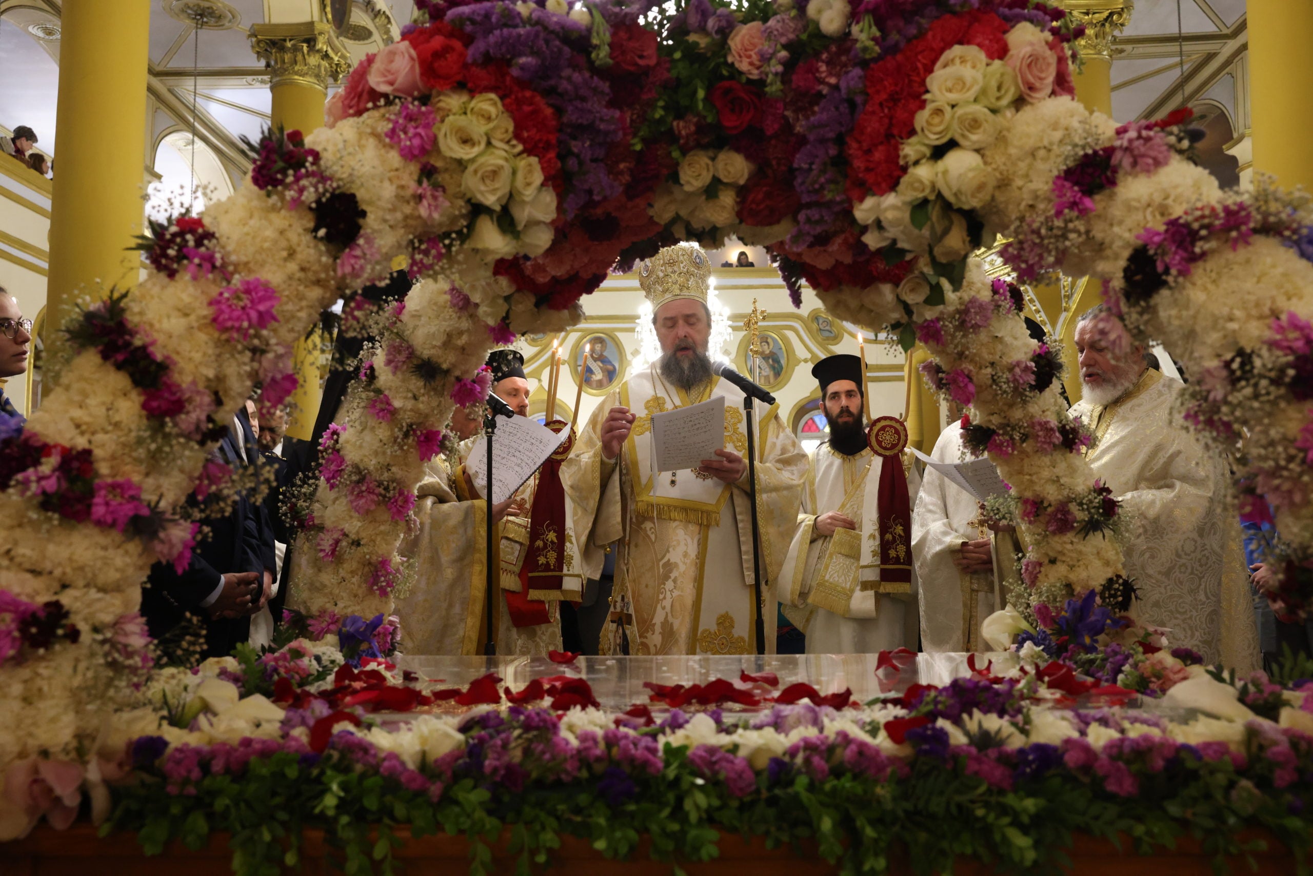 Η Ακολουθία του Επιταφίου τελέστηκε στις 19:30 στον Μητροπολιτικό Ιερό Ναό Αγίου Γρηγορίου του Παλαμά, χοροστατούντος του Μητροπολίτη Θεσσαλονίκης Φιλόθεου.