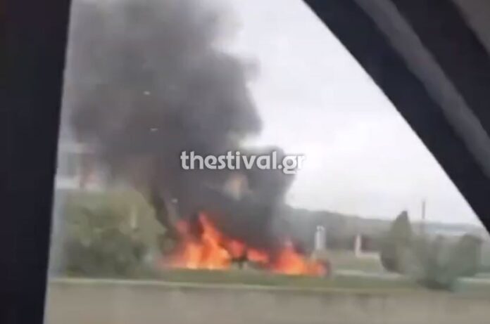 Στις φλόγες παραδόθηκε ένα όχημα στην εθνική οδό Θεσσαλονίκης – Μουδανιών, στο ρεύμα προς Θεσσαλονίκη, το μεσημέρι της Τετάρτης (29/01).